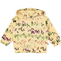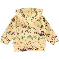 Dorothy is a light yellow hoodie with a zip closure and a print of colourful, climbing plants. Wear it with matching sweatpants.