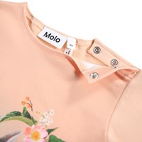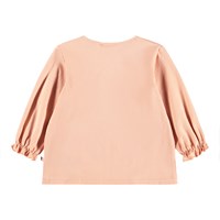 Rose long-sleeved top for the little ones made of organic cotton jersey with a print of rabbits and flowers. The long-sleeved top has a loose fit and sleeves with elastic at the wrists, which gives a small ruffle edge. There is a button closure at the shoulder, making it easy to put on and take off.