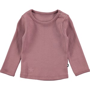 Long sleeve t-shirt with a star detail on the front. Easy single snap closure on one shoulder.