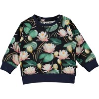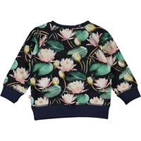 Elsa is a baby top with a print of pink water lilies. Elsa has raglan sleeves and an easy snap closure at the neck.