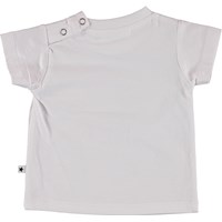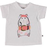 Erica is a white baby t-shirt with a placement print of a dressed up hamster.
