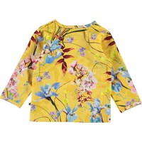 Eva is a yellow baby top with a floral print. The top has long sleeves and a round neck.