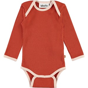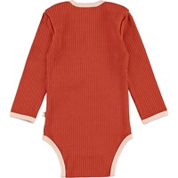 Faros is a dark red baby bodysuit in a rib quality with a pink edge tape. Faros has easy snap closure at the collar and the crotch. This product is made of organic cotton. Baby Basics.