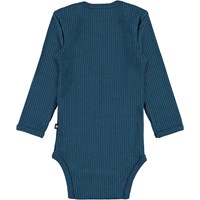 Faros is a blue baby bodysuit in a rib quality. Faros has easy snap closure at the collar and the crotch. This product is made of organic cotton. Baby Basics.