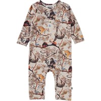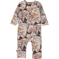 Fenez is a baby romper with long legs and sleeves. It is rose coloured with a print of various animals, living together in harmony in nature. Fenez has an easy snap closure at the neck and between the legs.