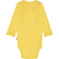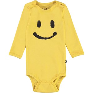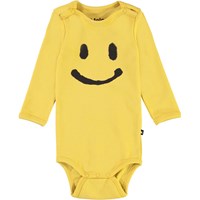 Foss is a long sleeve, yellow baby bodysuit a with black coloured smiley on the front. It has easy snap closures at the neck and between the legs for quick changes.
