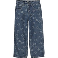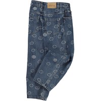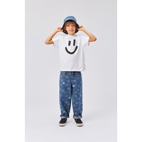 Aiden is Molo's new unisex jeans in blue with a print of various smiley faces. The jeans have a cool and extra wide fit, inspired by the skater world. The roomy fit and the wide legs make the jeans easy to move around in. The waist can be adjusted with an inner elastic, making it perfect for all shapes and sizes. Aiden is in 100% cotton, which makes them extra durable. Please note that sizes up to and through 134 have a snap closure and not a regular jeans button.