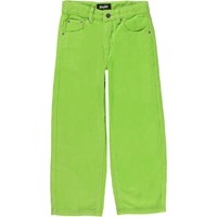 Neon green trousers in corduroy in 100% cotton. They have long legs and are in a loose fit. The waistband can be adjusted by an inner elastic so the pants fit all children perfectly. Sizes 92-134 have an easy snap closure, while sizes 140-176 have a regular jeans button.