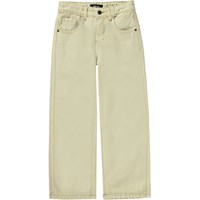 Aiden is Molo's new, unisex jeans in beige that has a cool and extra wide fit, inspired by the skater world. The roomy fit and the wide legs make the jeans easy to move around in. The waist can be adjusted with an inner elastic, making it perfect for all shapes and sizes. Aiden is in 100% cotton, which makes them extra durable. Please note that sizes up to and through 134 have a snap closure and not a regular jeans button.