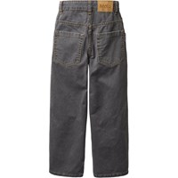 Grey denim jeans made of cotton in a wide and relaxed fit, inspired by skater style. The trousers have 5 pockets and adjustable elastic in the waist, so they fit well on all children. Sizes 92-134 have a press stud, making them easy to take off and put on, while sizes 140-176 have a classic jeans button.