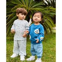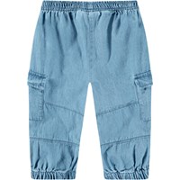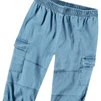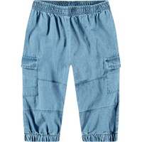 Light blue cargo pants made from soft organic cotton chambray for the little ones. The trousers have a loose fit and cargo pockets on the thighs. They also have an elastic waist, making them easy to put on and take off, as well as elastic cuffs at the ankles.