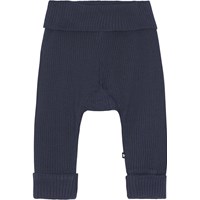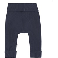 San is a pair of soft, blue baby trousers in rib. They have a folding wide elastic at the legs and waist. Wear the trousers with a matching top.