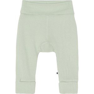 San is a pair of soft, mint green baby trousers in rib. They have a folding wide elastic at the legs and waist. Wear the trousers with a matching top.