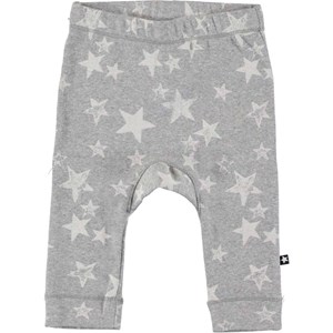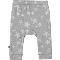 Seb is a pair of grey baby trousers with white stars. They have narrow legs with rib edges and an elastic waist to ensure a comfortable fit.