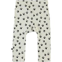 Seb is a pair of white baby trousers with a black dog print. Seb has narrow legs and rib. They have elastic waist to ensure a comfortable fit.