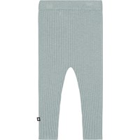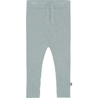 Bluish grey knit trousers for small children in a soft viscose blend. They are snug fitting with a lovely rib edge, elastic with a drawstring at the waist, which makes them comfortable and easy to pull on. You can wear them with the matching cardigan for a wonderful knit set.