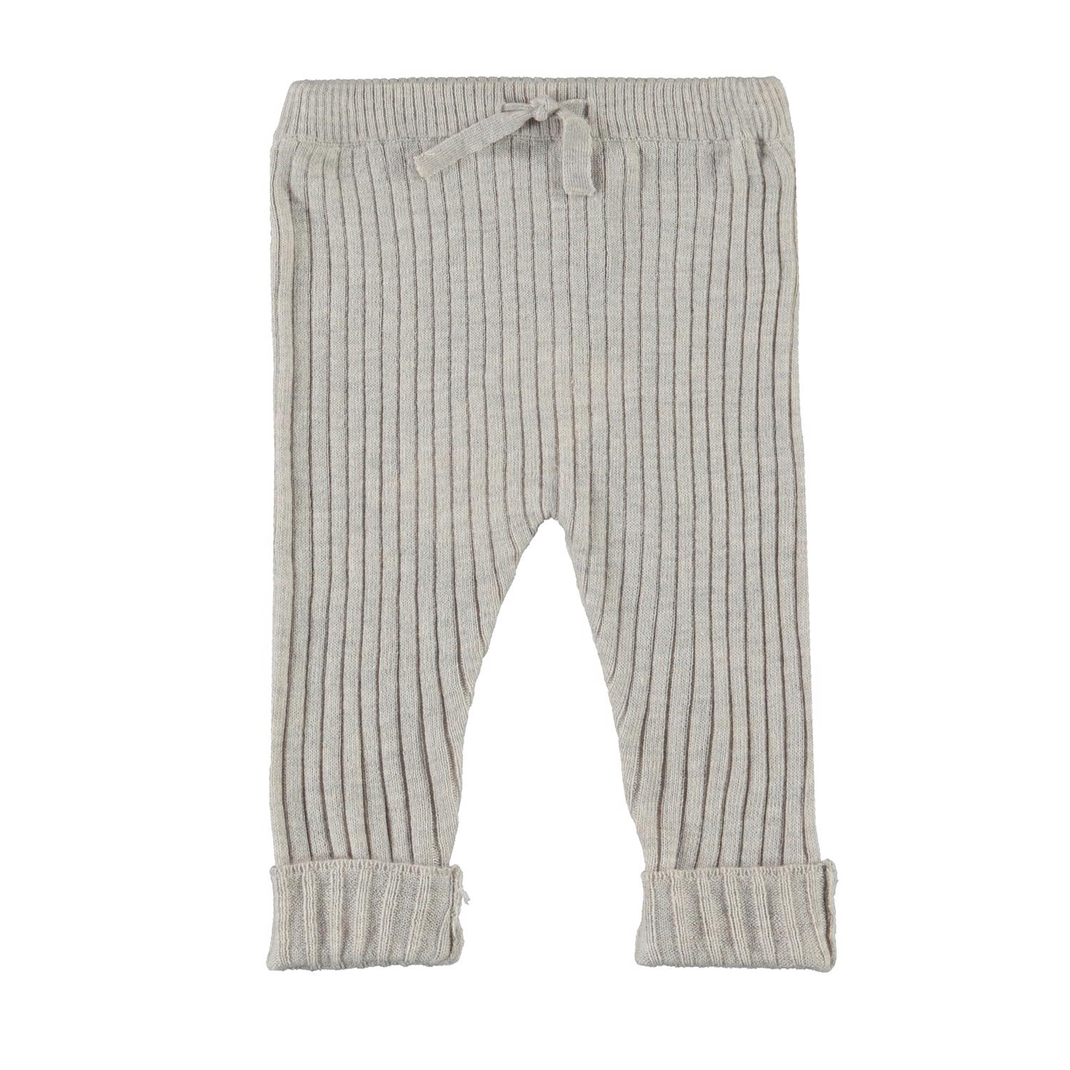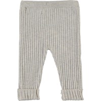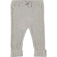 Shadow is a pair of knit baby trousers in grey. They have ties at the waist and roll up at the legs.
