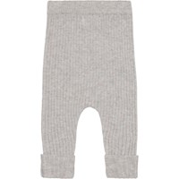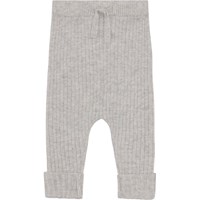 Shadow is a pair of delicate, light grey rib knit trousers with cashmere. They have an elastic waist with ties and roll up at the legs. Wear them with a matching rib knit cardigan.
