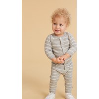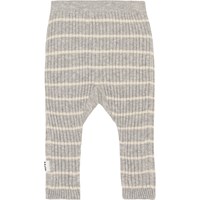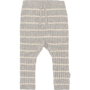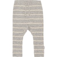 Sigmund is a pair of rib knit baby trousers in grey with narrow white stripes. They have ties at the waist and can be rolled up at the leg.
