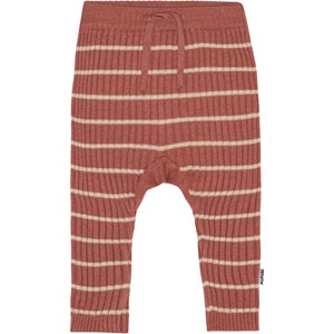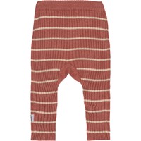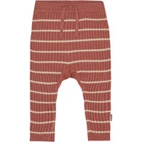 Dark rose rib knit trousers in off-white stripes for small children. These trousers are in a cotton/wool blend. They have long legs with a drawstring waist. Wear them with the Bendix jumper in the same quality for the perfect set.