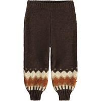 Dark brown wool blend pants for the little ones with a woven Nordic pattern at the bottom of the pants. The pants have an elastic waistband to make them easy to put on and take off and ribbed cuffs at the ankles. Combine it with the matching sweater for a complete set.