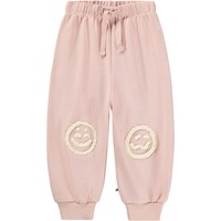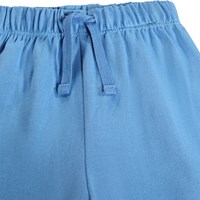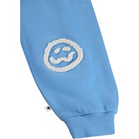 Soft, blue sweatpants for the little ones made of organic cotton with funny patches on the knees. The sweatpants have elastic and drawstring at the waist, ribbed edges at the ankles, and an unbrushed inside.