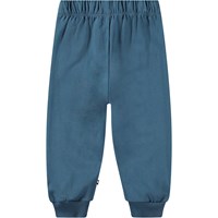 Blue joggers for the little ones made of organic cotton with a brushed inner fae making them soft and warm to wear. The trousers have an elastic waistband and drawstrings, as well as rib cuffs at the ankles. They are easy to put on and take off, provide plenty of room for movement, and feature light blue balloons printed on the knees.