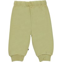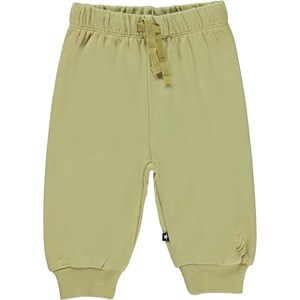 Simeon is a pair of green sweatpants. They have an elastic waist with ties.