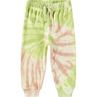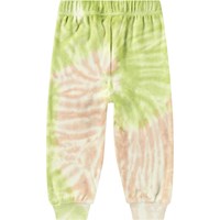 Green and pink tie-dye sweatpants for the little ones in organic cotton velour with an unbrushed inner face, making them pleasantly cool on hot days. The pants have an elastic waistband and drawstring, as well as rib cuffs at the legs. They are easy to take off and put on and provide plenty of freedom of movement. Our tie-dye is handmade, creating a unique pattern that varies from style to style.