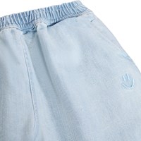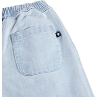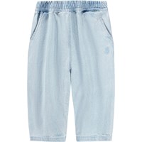 Blue denim trousers for the little ones made of organic cotton. The trousers have a loose fit, front and back pockets, and an elastic waist which make them easy to put on and take off. They are light and comfortable so they are perfect for everyday use.