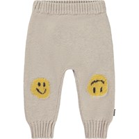 Beige knit trousers with smiley faces on the knees for small children. They are in a cotton/wool blend and have long legs. These trousers have a rib knit at the waist and legs. Wear them with the Bless jumper in the same quality for the perfect set.