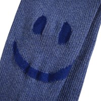 Blue pants for the little ones made of a soft rib knit of cotton and wool with a smiling face on the thigh. The pants have an elastic waistband to make them easy to put on and take off and ribbed cuffs around the ankles. Combine it with the matching sweater for a complete set.
