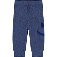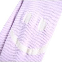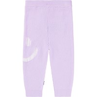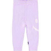 Purple pants for the little ones made of a soft rib knit of cotton and wool with a smiling face on the thigh. The pants have an elastic waistband to make them easy to put on and take off and ribbed cuffs around the ankles. Combine it with the matching sweater for a complete set.