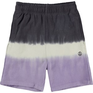 Adian is a pair of unisex shorts with wide stripes in purple, white and grey.