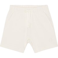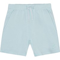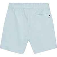 Light blue shorts in soft, organic cotton jersey. The shorts have side seam pockets, a back patch pocket and elastic at the waist, with a drawstring, which ensures a good fit and makes them easy to pull on. They have a sweet, little embroidered smiling face on the front.
