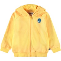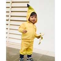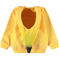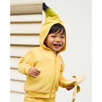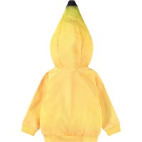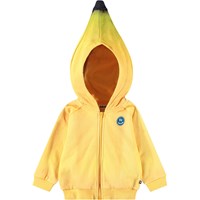 Hoodie in organic cotton for the little ones. The hoodie has a banana-shaped hood, zipper, ribbed hem and cuffs, and a small print of a blue smiling face on the chest. Yellow with black details. Pair with the matching Sani trousers for a complete banana outfit.
