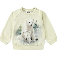 Light sweatshirt for the little ones in organic cotton jersey with an unbrushed inner face, which makes it pleasantly cool on hot days. The sweatshirt has raglan sleeves, rib at the hem and cuffs, and a round neckline with two poppers at the back, making it easy to put on and take off. On the front of the sweatshirt is a cute print of two polar bear cubs.