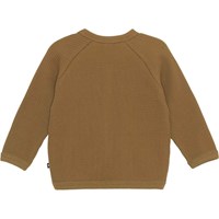 Dory is a green brown organic cotton cardigan in a waffle structure with a button closure. Wear it with matching trousers.