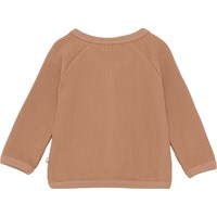 Dory is a rose coloured baby cardigan in a cotton waffled knit and with a button front closure. Wear it with matching trousers.