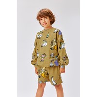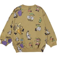 Mar is a green unisex sweatshirt with a print of comical fruit. The sweatshirt is in a great length. Wear the sweatshirt with matching shorts.