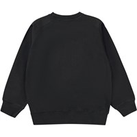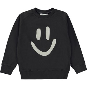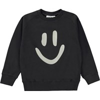 Mike is a black unisex sweatshirt with a print of a smiley face on the front.