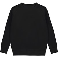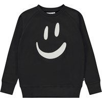 Black sweatshirt with an embroidery of a large smiley face in white on the front. This sweatshirt is in 100% cotton, and it has raglan sleeves, a round neck with a rib edge and rib at the sleeves and bottom. It is in a regular fit.