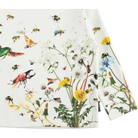 Mountoo is a white long-sleeved t-shirt with prints of insects and flowers.