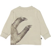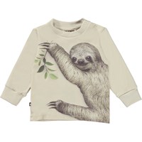 Elit is a beige baby top with a sweet print of a sloth on the front. Elit has an easy, two-snap closure on one shoulder.