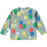 Grey top in organic cotton jersey for the little ones. The top has good mobility, long sleeves, and ribbed cuffs. It also has two poppers on the left shoulder, making it easy to put on. The top has an all-over print on a grey background of balloons in different colours.