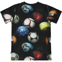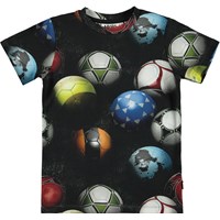 Ralphie is a black unesex t-shirt with a print of colourful footballs. The t-shirt has a round neck.