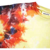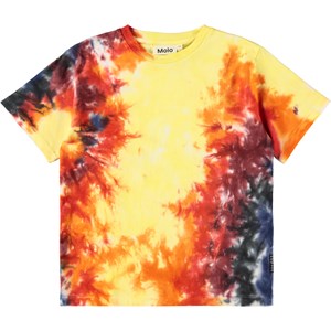 Colourful tie-dye T-shirt made of soft organic cotton with short sleeves, a loose fit, and a ribbed neckline.