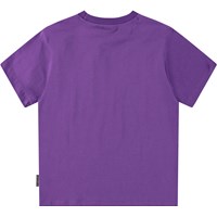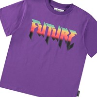 Purple t-shirt in organic cotton with short sleeves and ribbed neckline. The t-shirt has a loose fit with the colourful text "Future".
