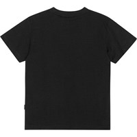 Black, short sleeve t-shirt in organic cotton with a large smiling face print on the front. The t-shirt has a round neck and is in a regular fit.