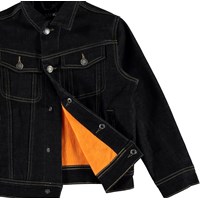 A denim jacket is always a year-round classic for both indoor and outdoor use. Harald is no exception. Harald is dark blue and has a button closure and an orange lining.